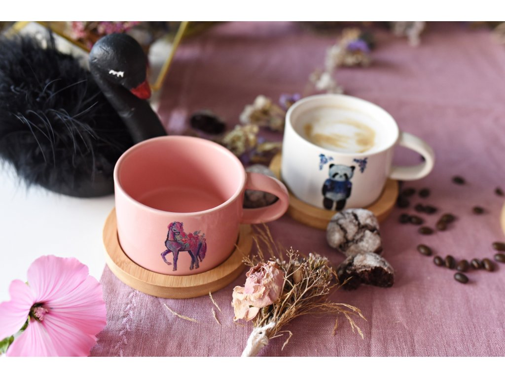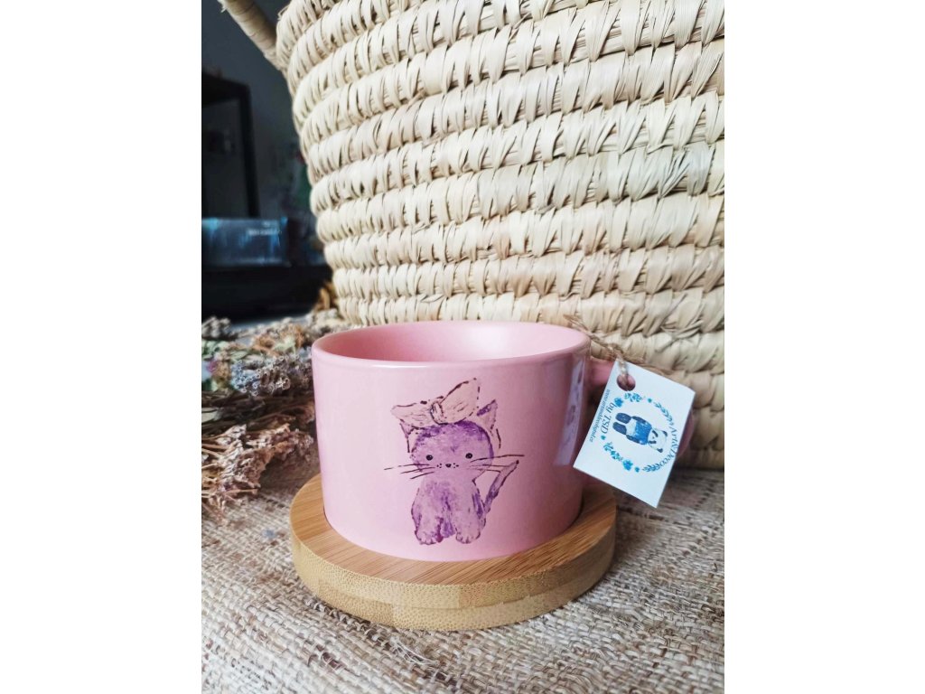 Keramický růžový hrnek - různé motivy - 200 ml na bambusovém podtácku Výběr motivů