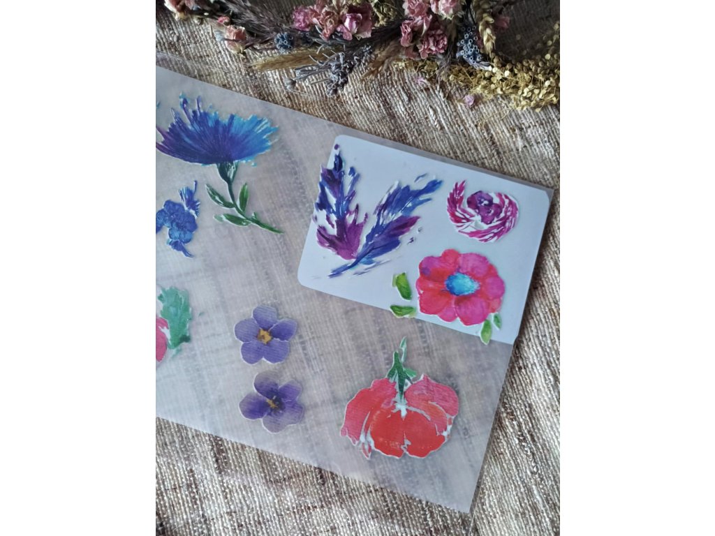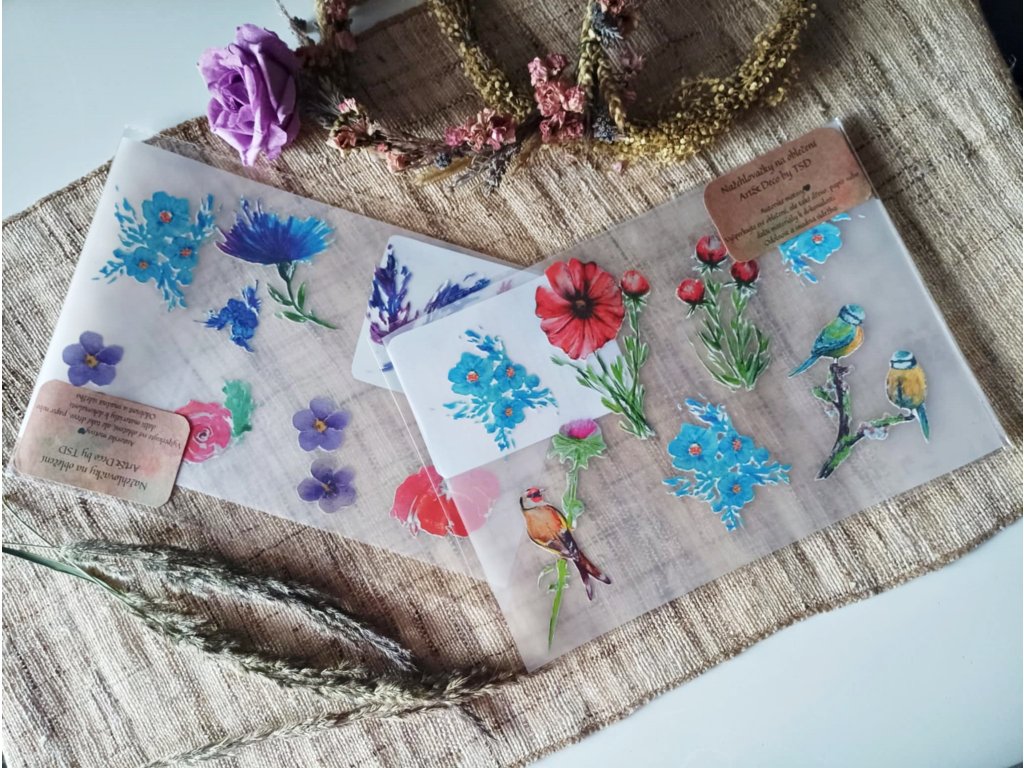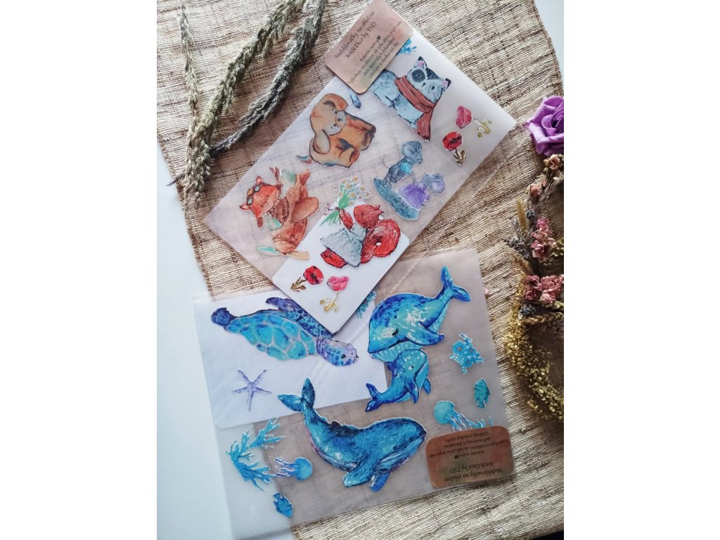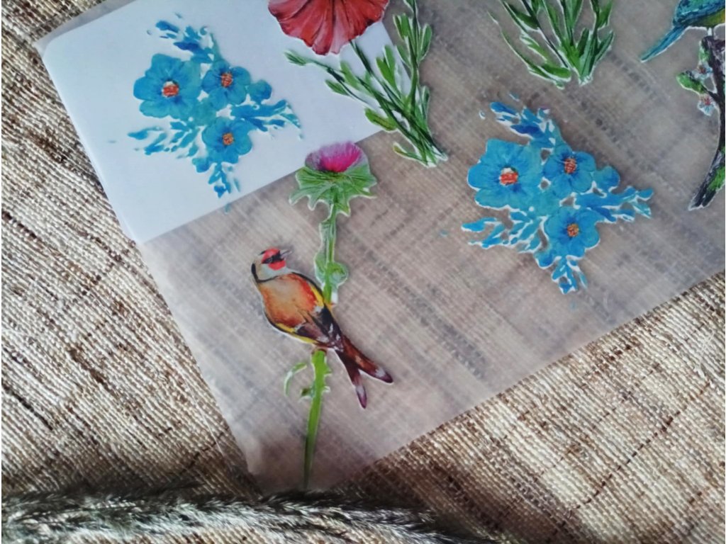 - Rozměry: Velikost archu cca A4 (liší se dle motivů) - květiny a ptáci 30x21,5 cm, květiny 30x18 cm, roztomilá zvířátka 29,5x18 cm, mořský svět 30x24 cm - největší samostatný motiv cca 10-16 cm, nejmenší motiv 4-5 cm