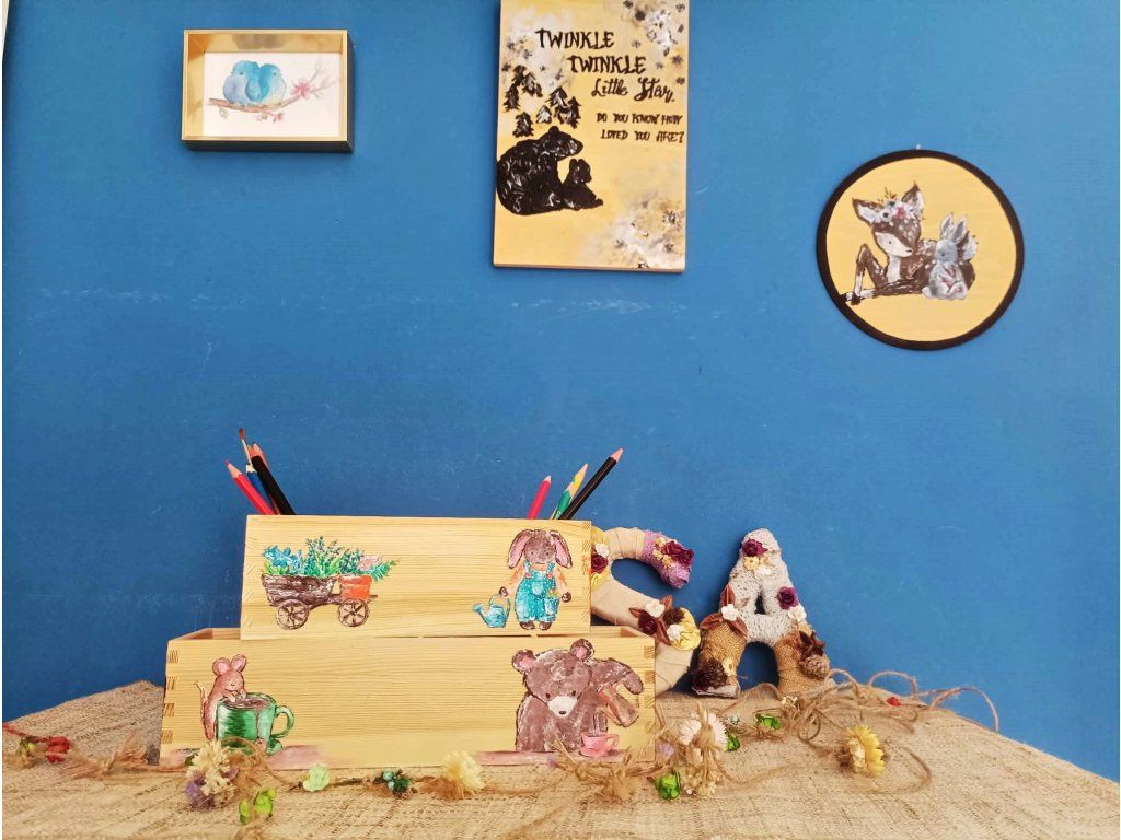 - Materiál: Překližka/dřevo, kvalitní akrylové barvy vhodné na dětské dekorace, matný lak