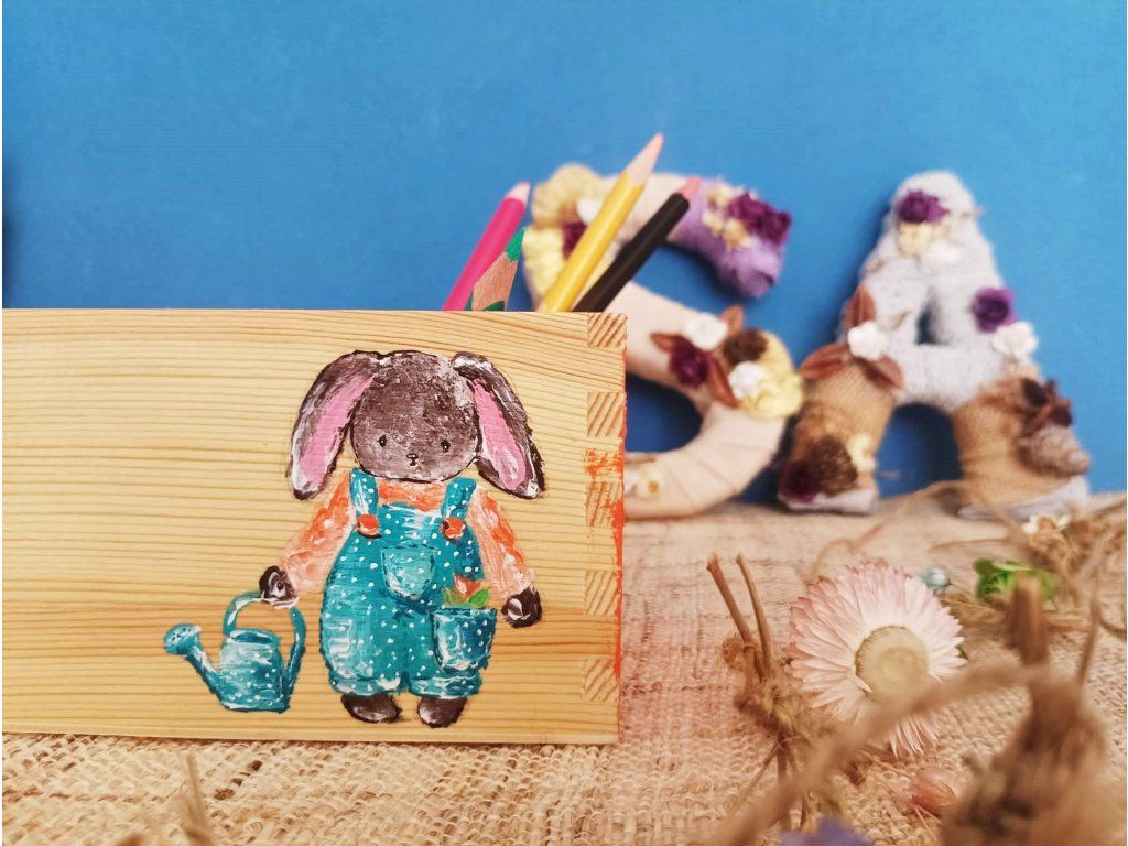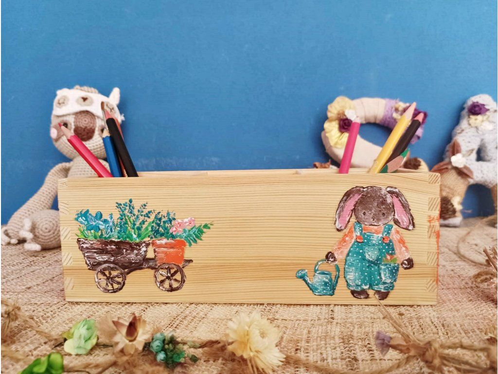 Rozměry pastelkovníku s králíčkem: šířka 23,3 cm x výška 8 cm x hloubka 8,7 cm