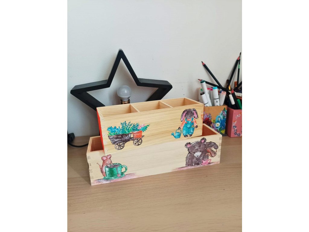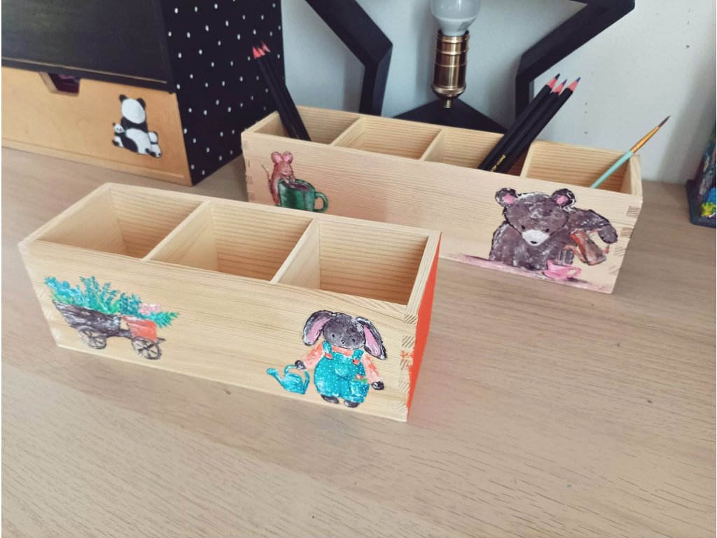Pastelkovníky v různé velikosti, barevnosti a motivy dle domluvy maluji i na zakázku. Cena se odvíjí od náročnosti motivu + typu stojánku (je možný jednopřihrádkový či více přihrádkové). Ceny stojánku na zakázku se pohybují cca od 620 CZK za jednopřihrádkové a od 920 CZK za více přihrádkové.