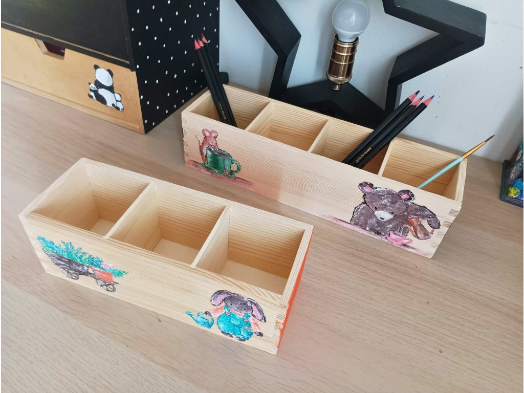 - Materiál: Překližka/dřevo, kvalitní akrylové barvy vhodné na dětské dekorace, matný lak