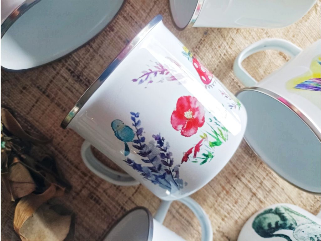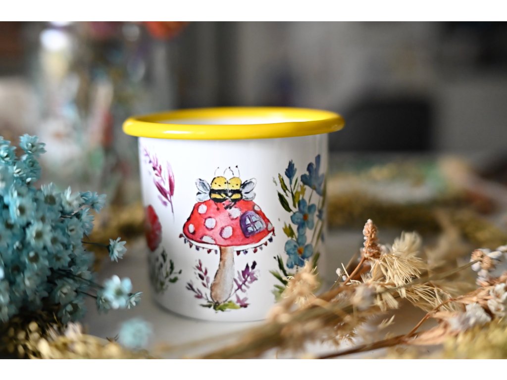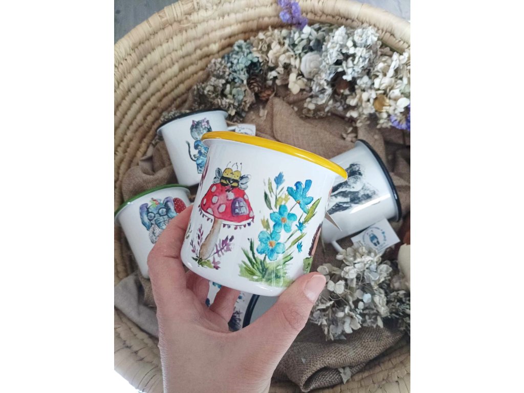 - Smaltované hrnečky se Vám budou krásně kombinovat s termoláhvemi s bambusovým víčkem