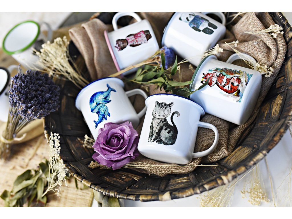 - Smaltované hrnečky se Vám budou krásně kombinovat s termoláhvemi s bambusovým víčkem