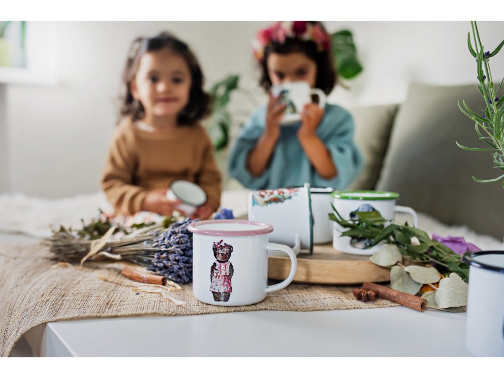 - Smaltované hrnečky se Vám budou krásně kombinovat s termoláhvemi s bambusovým víčkem