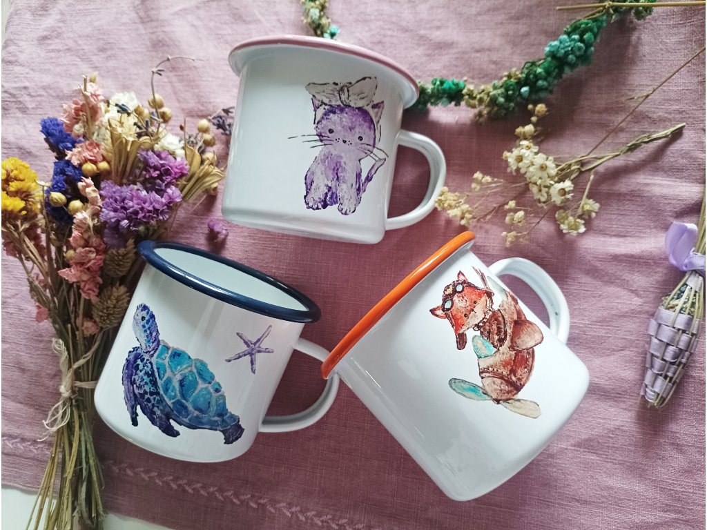 • Smaltované hrnečky se Vám budou krásně kombinovat s termoláhvemi s bambusovým víčkem