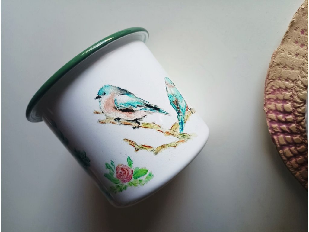 - Smaltované hrnečky se Vám budou krásně kombinovat s termoláhvemi s bambusovým víčkem