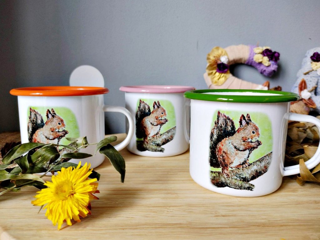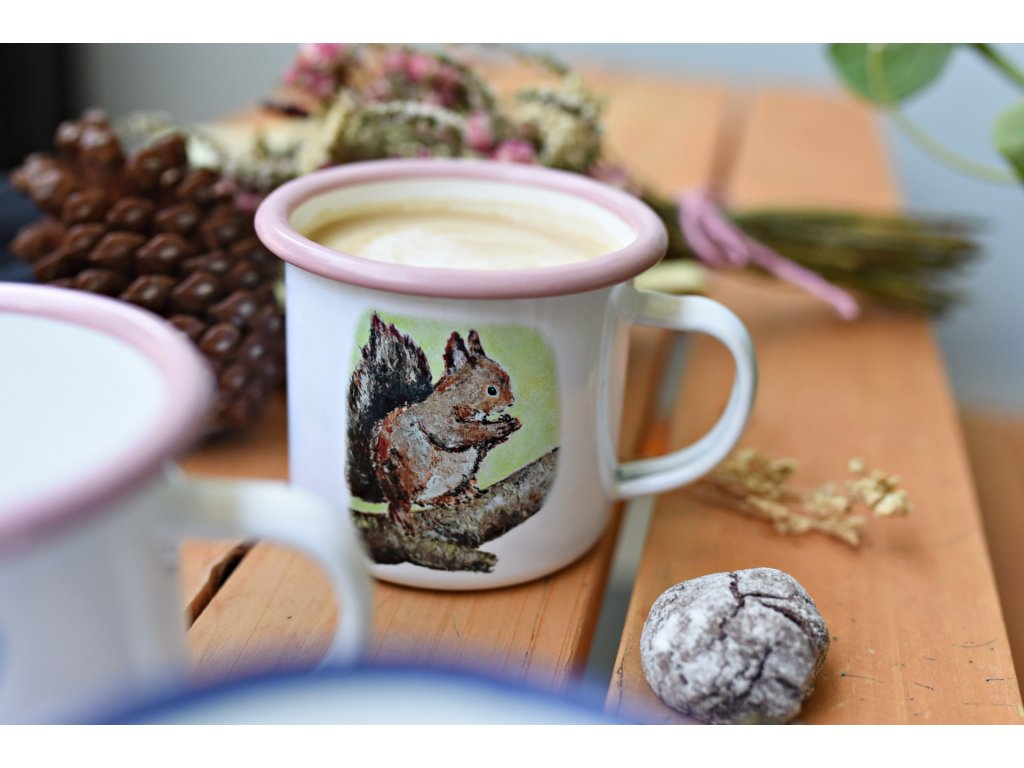 - Smaltované hrnečky se Vám budou krásně kombinovat s termoláhvemi s bambusovým víčkem