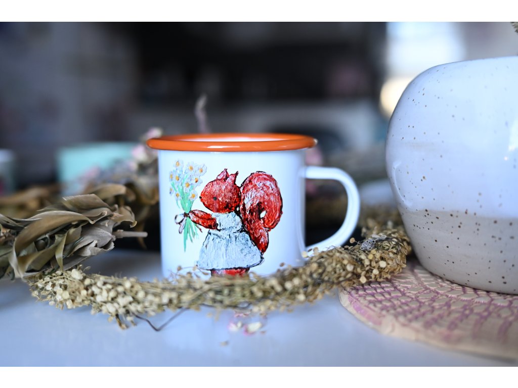 - Smaltované hrnečky se Vám budou krásně kombinovat s termoláhvemi s bambusovým víčkem