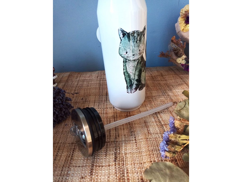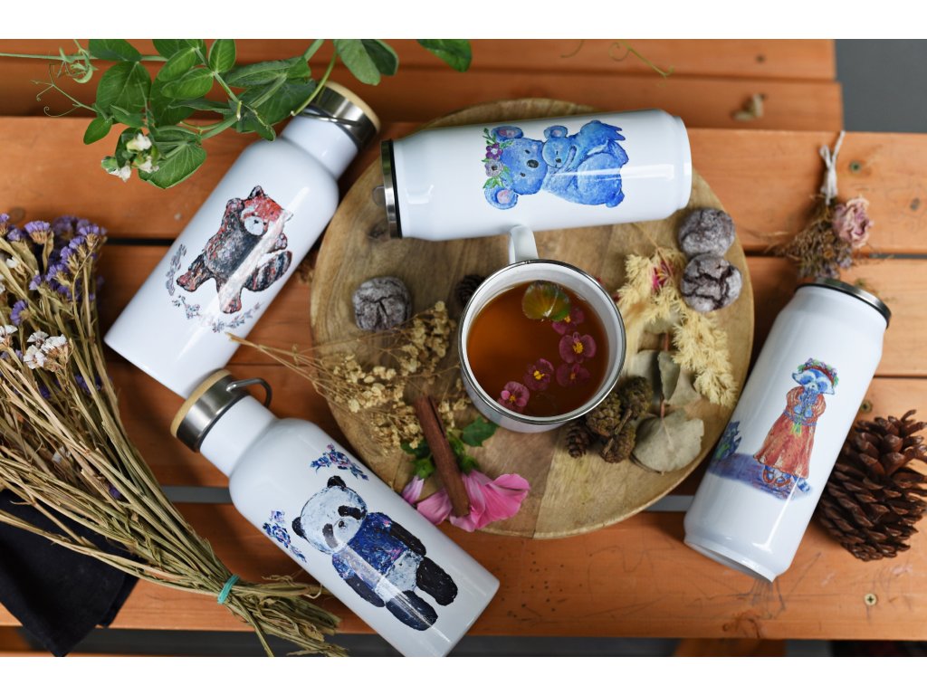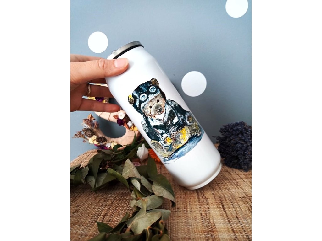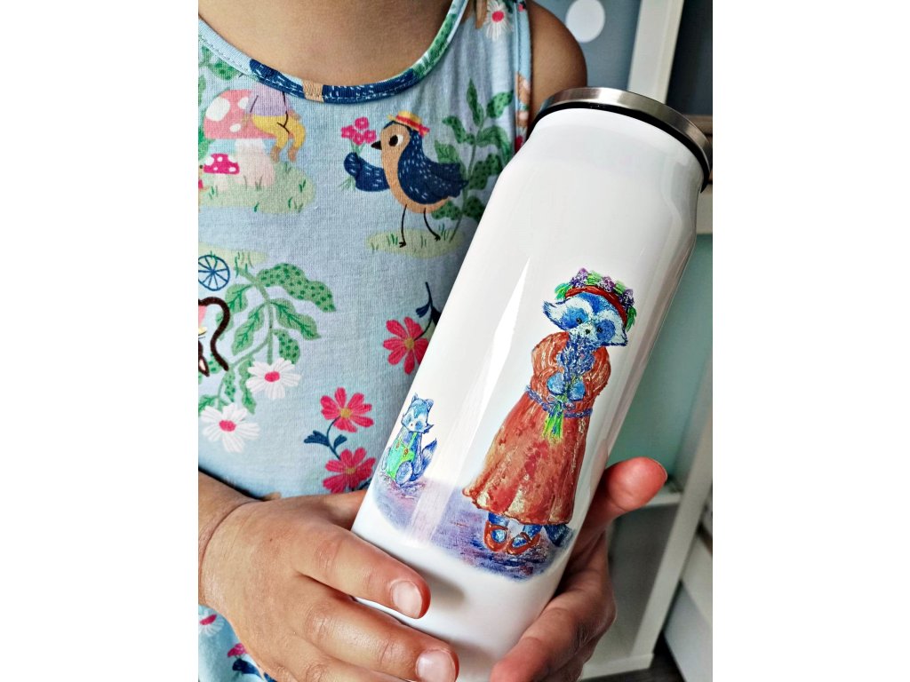 Každou termoláhev zdobí originální autorský motiv potisku, který původně vznikal pod mými štětci a barvami - každá termoska má tedy ryze český design