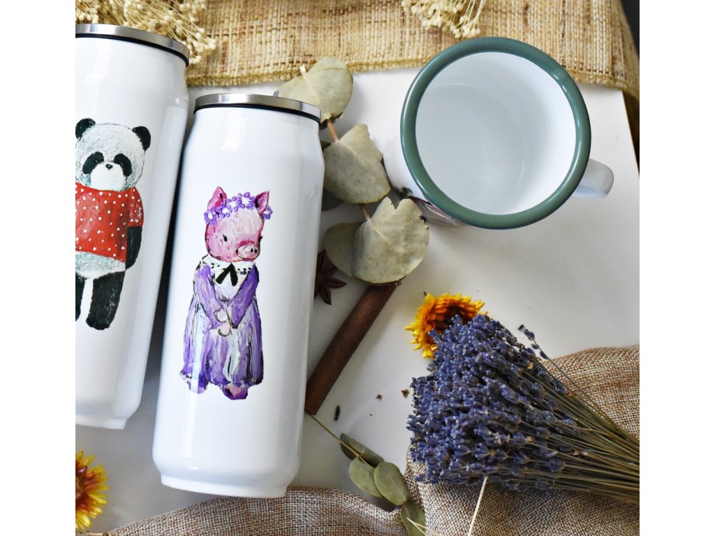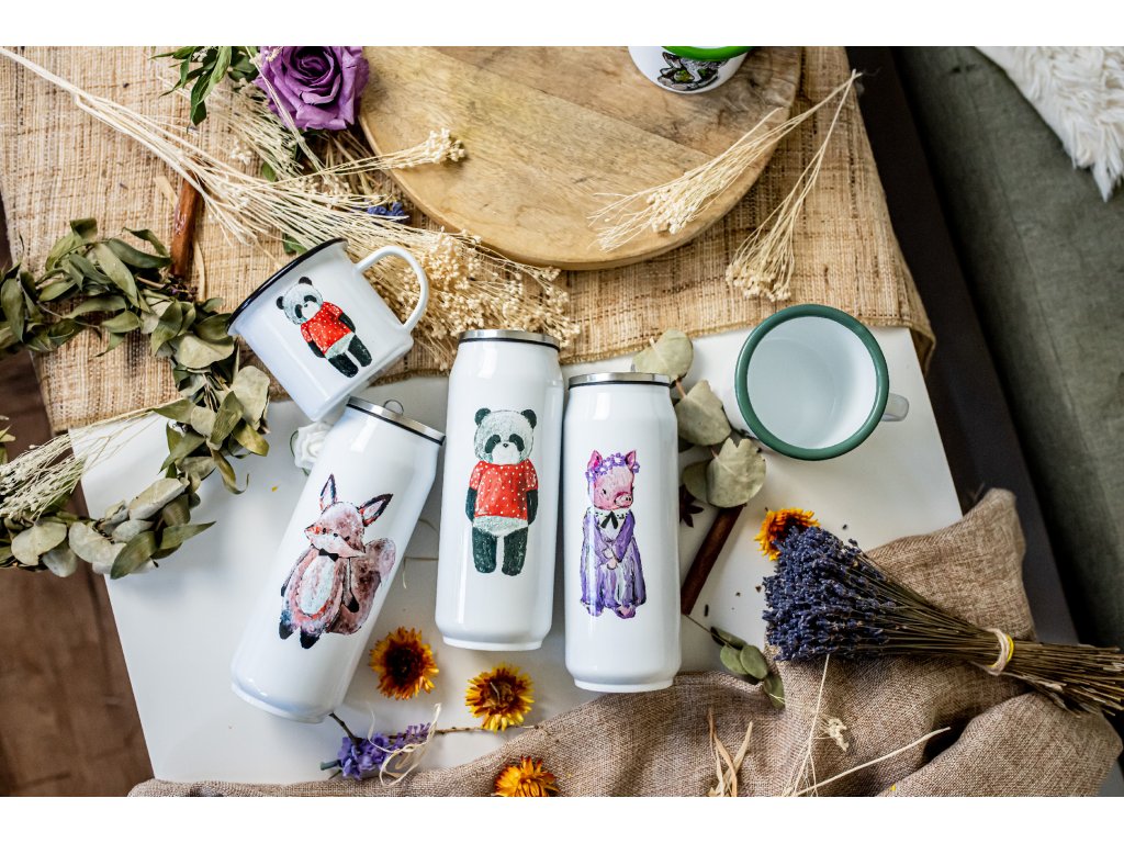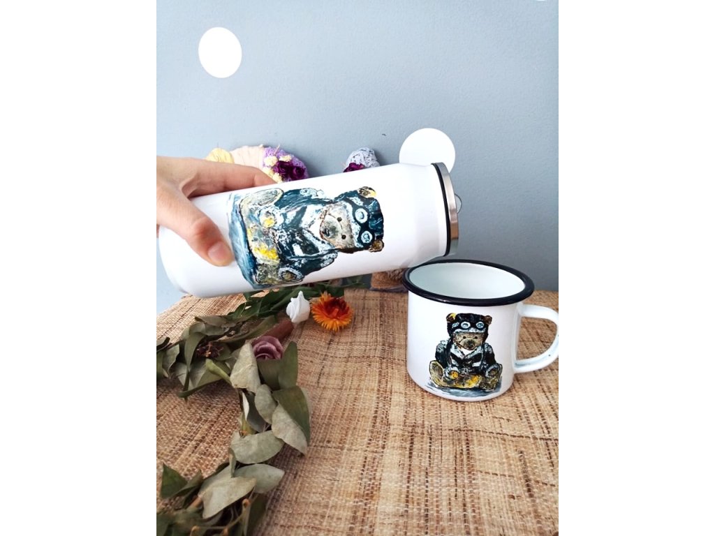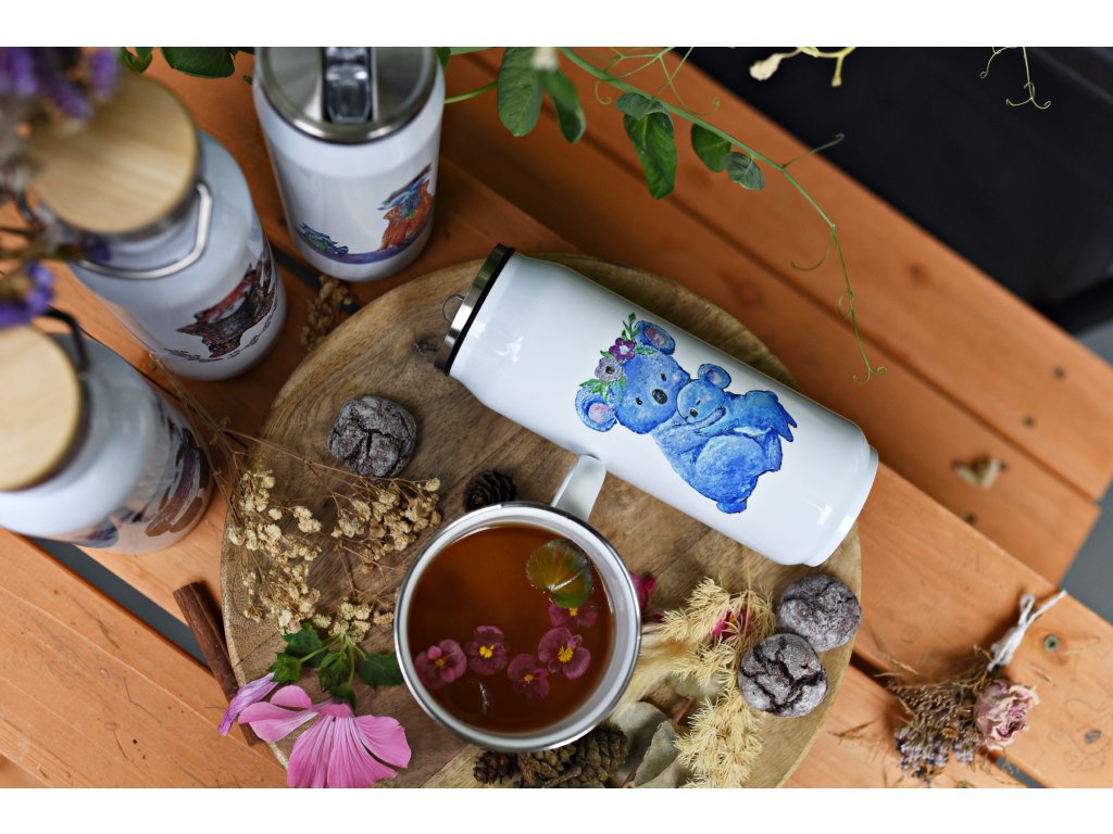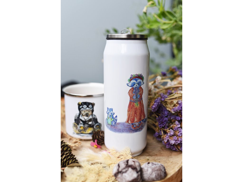 Každou termoláhev zdobí originální autorský motiv potisku, který původně vznikal pod mými štětci a barvami - každá termoska má tedy ryze český design