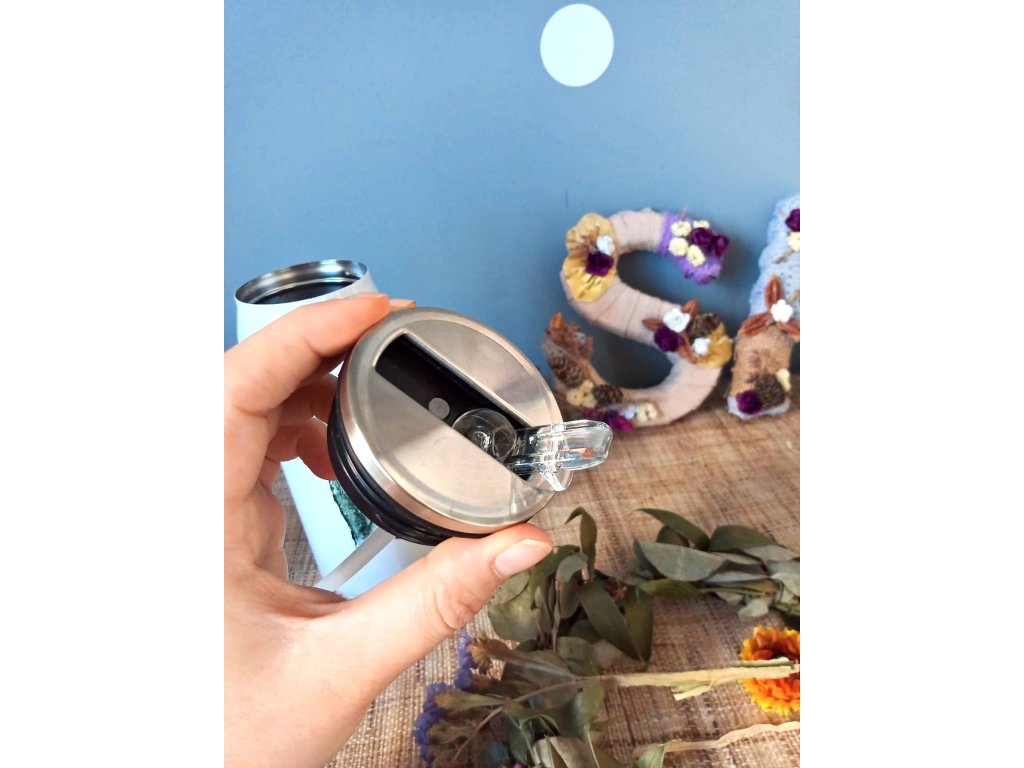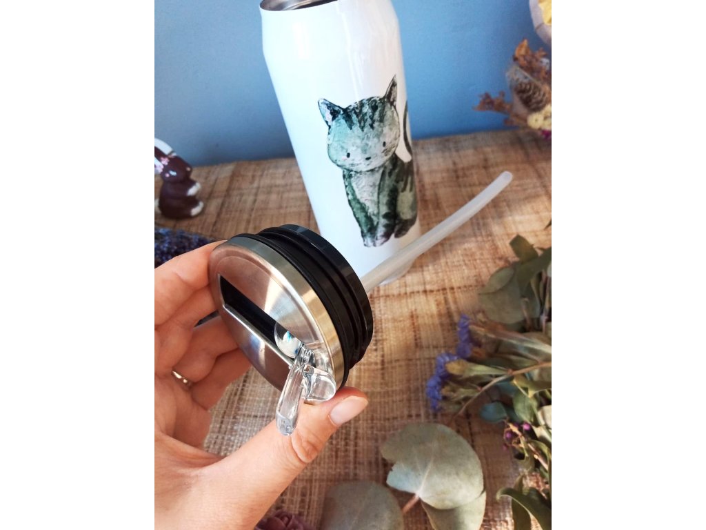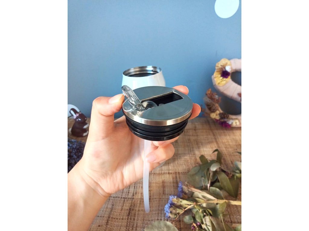 - Termoláhev má uvnitř brčko, které lze vyndat či nechat, dle preferovaného způsobu pití (ani bez vyndání brčka láhev neteče) - pouze pozor při šroubování termosky, aby se Vám při zavírání nesrolovala těsnící gumička - v tom případě stačí gumičku jen narovnat a vrátit do původního stavu :)